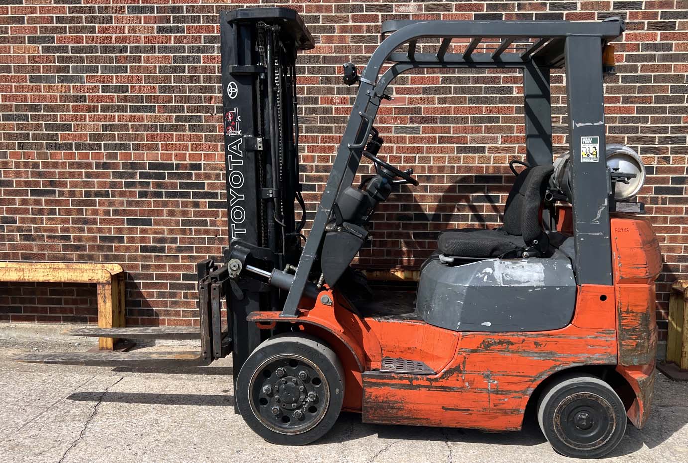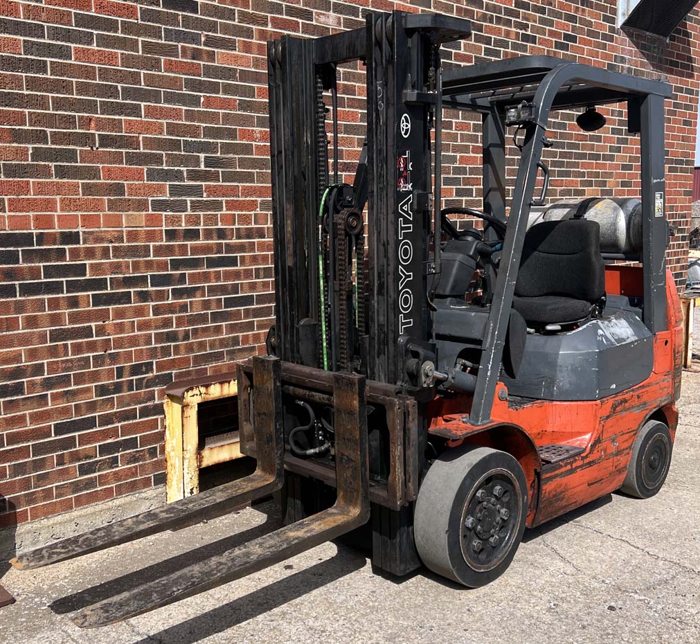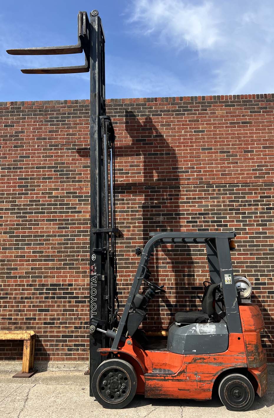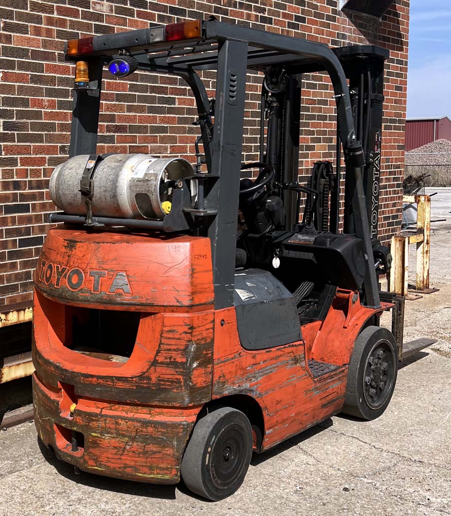 Full free lifting triple mast with sideshift, power steering and automatic transmission.