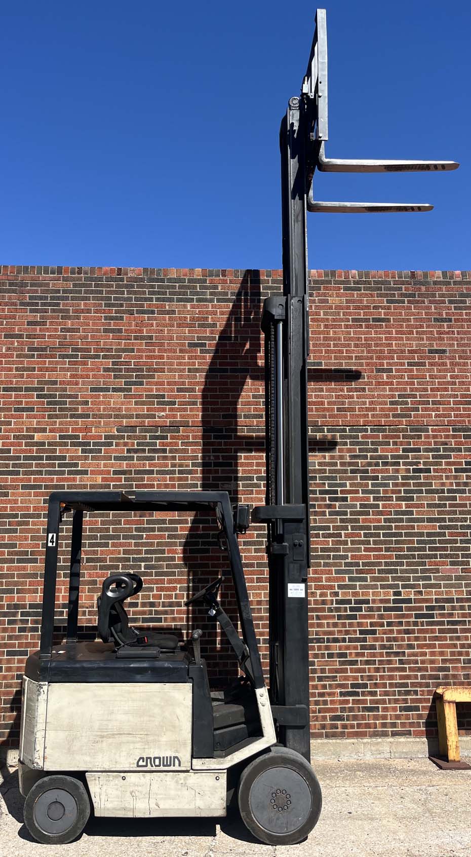Description | Full free lifting triple mast with sideshifting carriage, power steering, strong 36 volt battery and 3-phase battery charger included! |